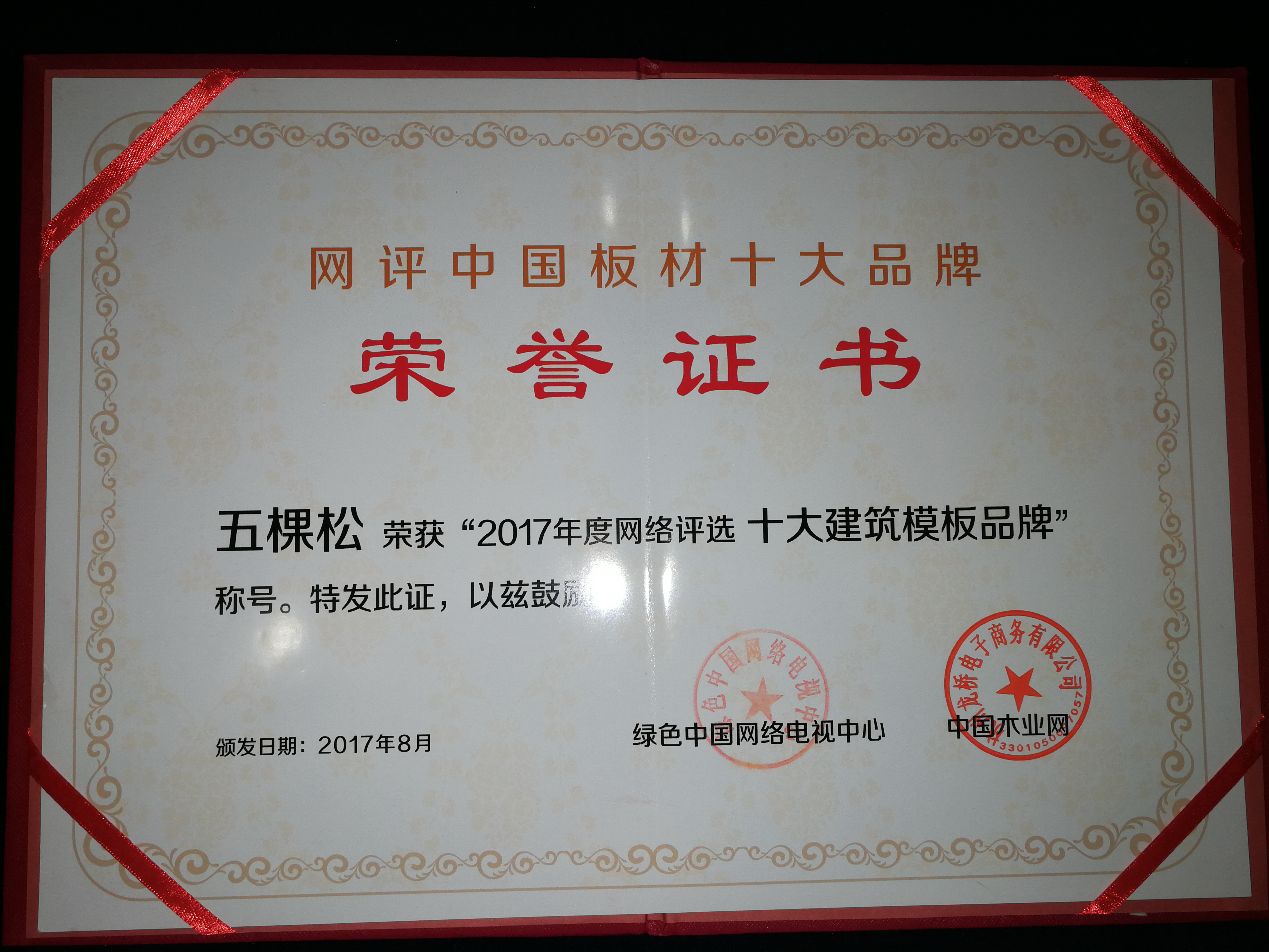 在此次頒獎典禮上,作為建筑模板行業領跑者,引領產業和諧發展的領袖企業,五棵松以過硬的產品質量、技術創新能力和完善的售后服務斬獲“十大建筑模板品牌”的殊榮。